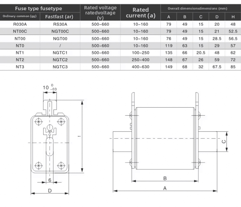 NT/NH-sarjan nelikulmaisia keraamisia sulakkeita käytetään yleisesti teollisuuden sähkölaitteissa, tehojärjestelmissä ja elektronisissa laitteissa suojaamaan piirejä ylikuormituksilta ja oikosuluilta.